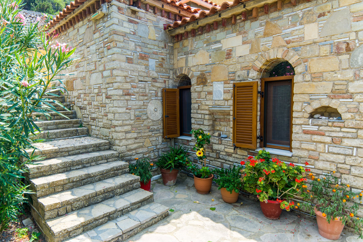 Neun geräumige Maisonetten (bis zu vier Personen) mit Kochnische, Badezimmer (Dusche) und  Balkon/Terrasse. Der Umgebung angepasste, einstöckige Gebäude mit Blick auf das Meer. Geschmackvoll im traditionellen Stil eingerichtet.